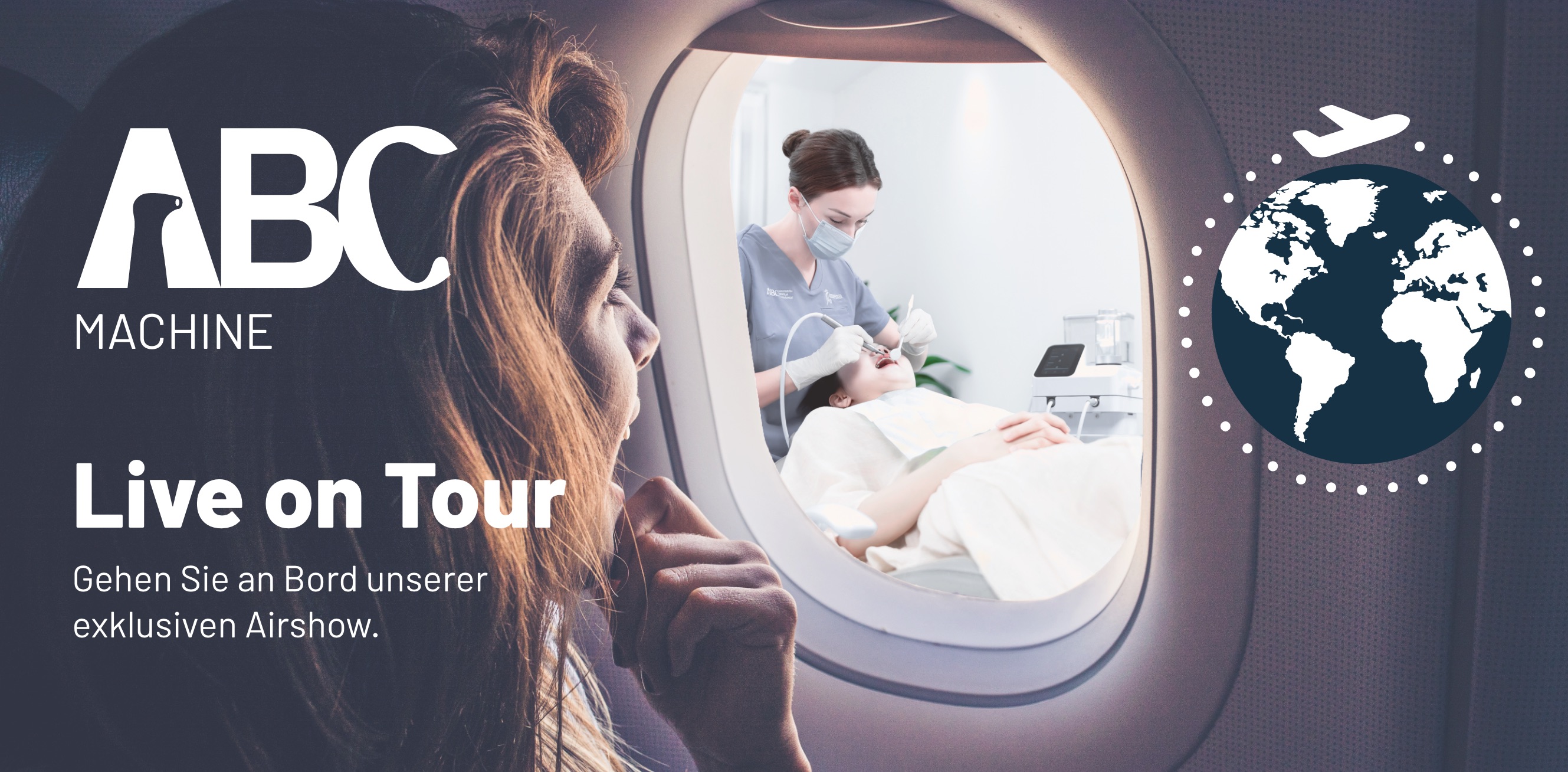Feiern Sie mit uns die Premiere unseres neuen Prophylaxegeräts und erleben Sie ein Event, das ­Innovation und Lifestyle auf einzigartige Weise verbindet. Feiern Sie mit uns die Premiere unseres ­neuen Prophylaxegeräts und gehen Sie an Bord unserer exklusiven ABC MACHINE Airshow!