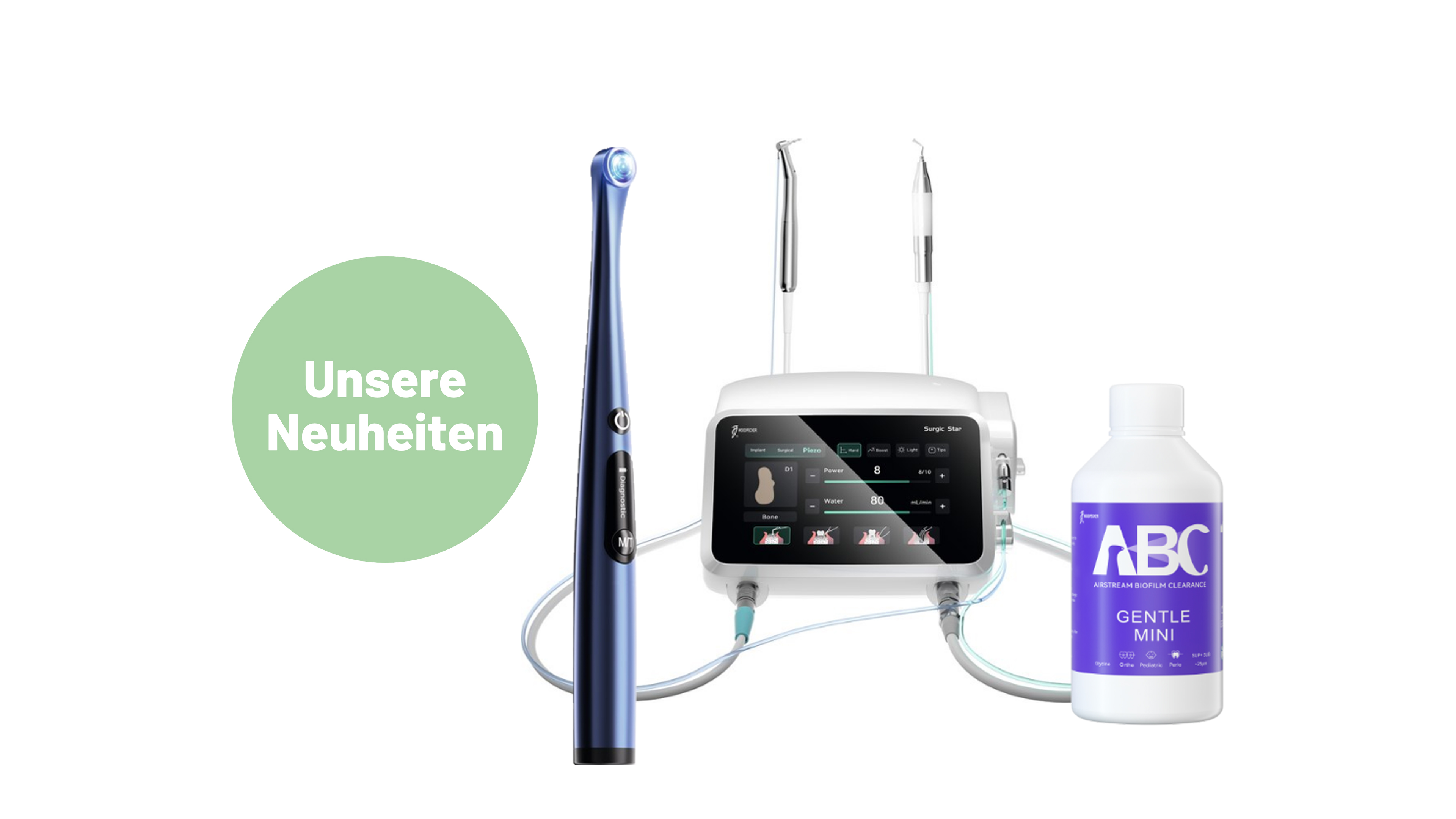 Entdecken Sie die neuesten Produkte von DTE, die Ihren Praxisalltag erleichtern und die Behandlung Ihrer Patienten noch sicherer und komfortabler machen. Von feinem Prophylaxepulver über leistungsstarke Polymerisationslampen bis hin zu vielseitigen Geräten für Chirurgie und Endodontie, alles sofort verfügbar und einsatzbereit.
